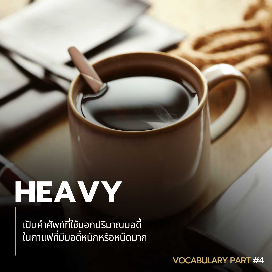 14 Heavy เป็นคำศัพท์ที่ใช้บอกปริมาณบอดี้ ในกาแฟที่มีบอดี้หนักหรือหนืดมาก