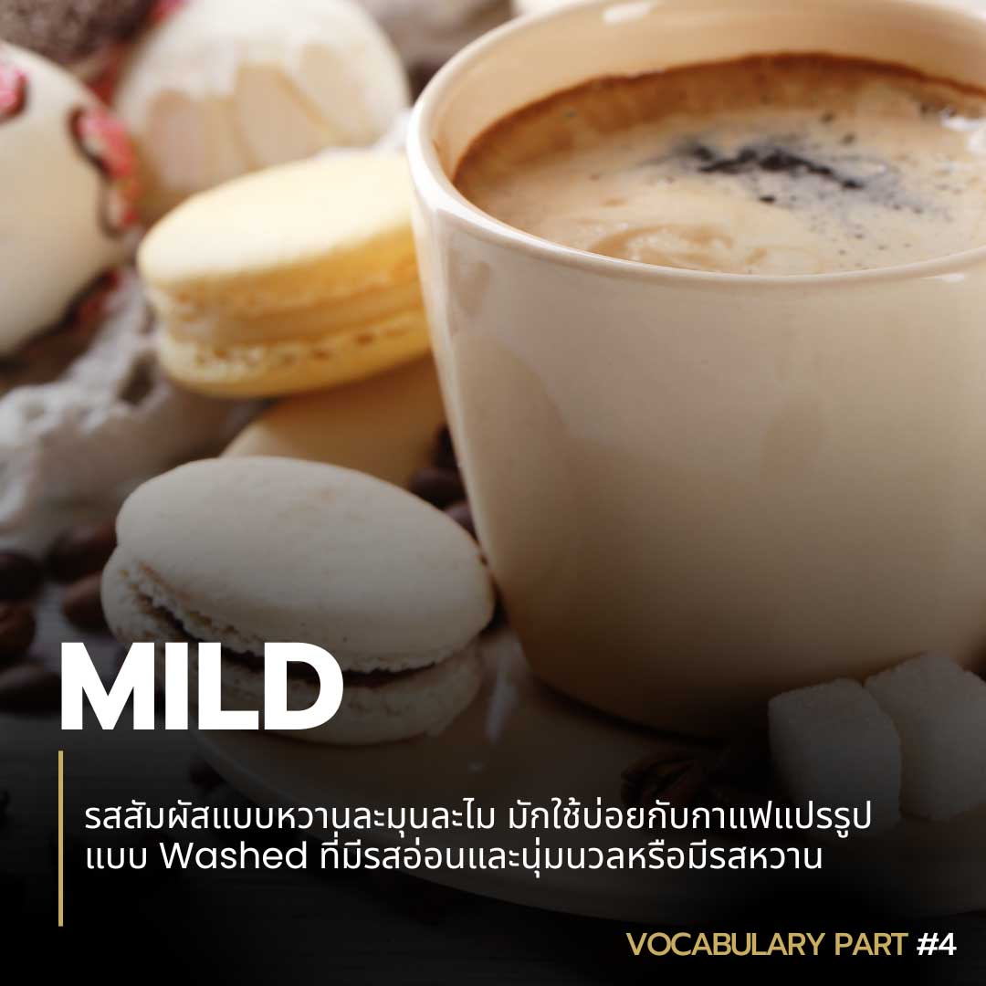 02 Mild รสสัมผัสแบบหวานละมุนละไม มักใช้บ่อยกับกาแฟแปรรูปแบบ Washed ที่มีรสอ่อนและนุ่มนวลหรือมีรสหวาน