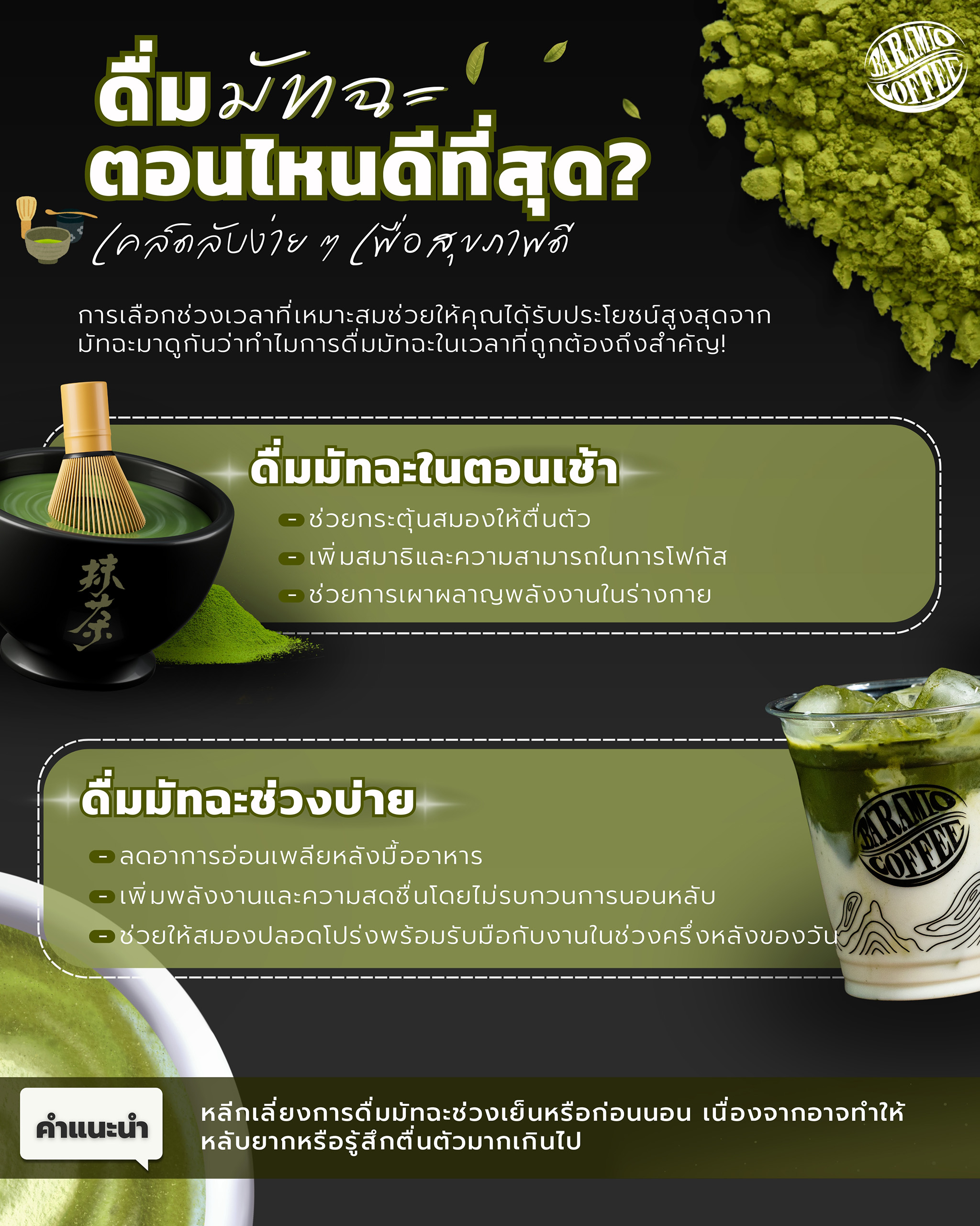 Baramio Matcha ไม่เพียงแค่ให้รสชาติที่ดี แต่ยังสนับสนุนสุขภาพและเหมาะกับทุกเมนูที่ต้องการความพิเศษ