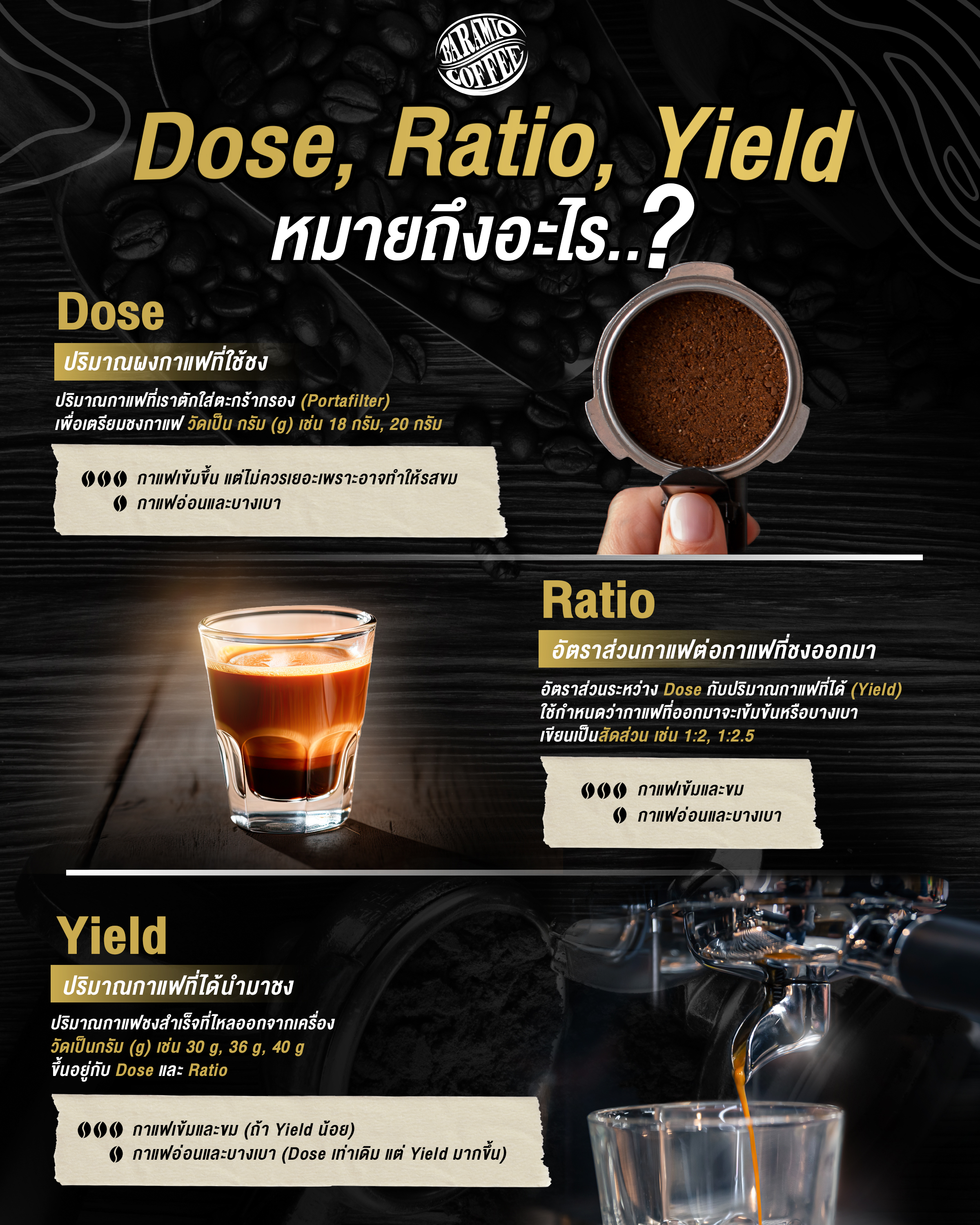 Dose, Ratio, Yield หมายถึงอะไร? ทำไมบาริสต้าต้องรู้